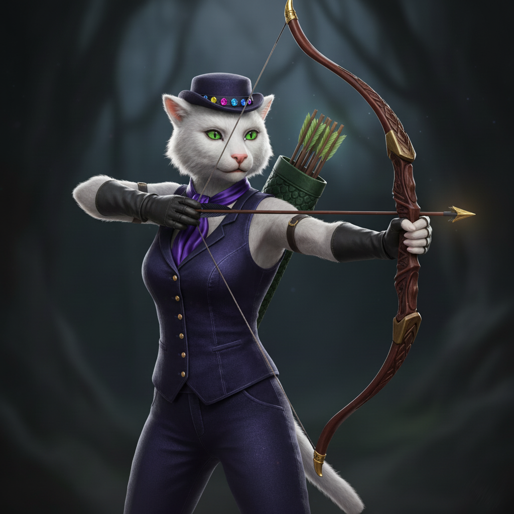 Albri was eventually entrusted with a couple of the family heirlooms: the magic quiver that generated arrows to strike a monster’s weakness, and the curious enchanted hat that could provide a variety of services to help in any situation. She had also grown accustomed to a life of plenty, though the urchin upbringing was always in her heart and she would quietly revel in gifts of fineries or the comfort of a plush bed. The life of a hunter was often hard, but it was lucrative enough that the family did well for themselves.